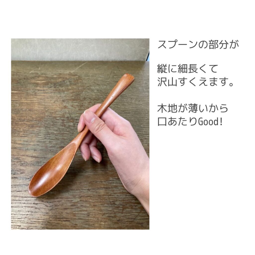 ここのスプーンの腹の部分が薄くて、ちょうどよくすくえるのよ。
