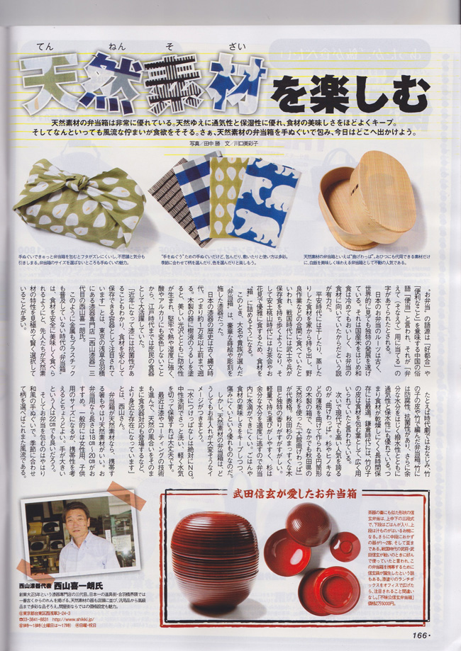 monoマガジン2013年6月16日㈱ワールドフォトプレス発行(p166)弁当男子のススメ-天然素材を楽しむで、弊店が紹介されました