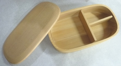 全面無垢のくりぬきの弁当箱 ぴったり寸法の人気商品 ゴム紐+T仕切付の小判弁当 お弁当に好適