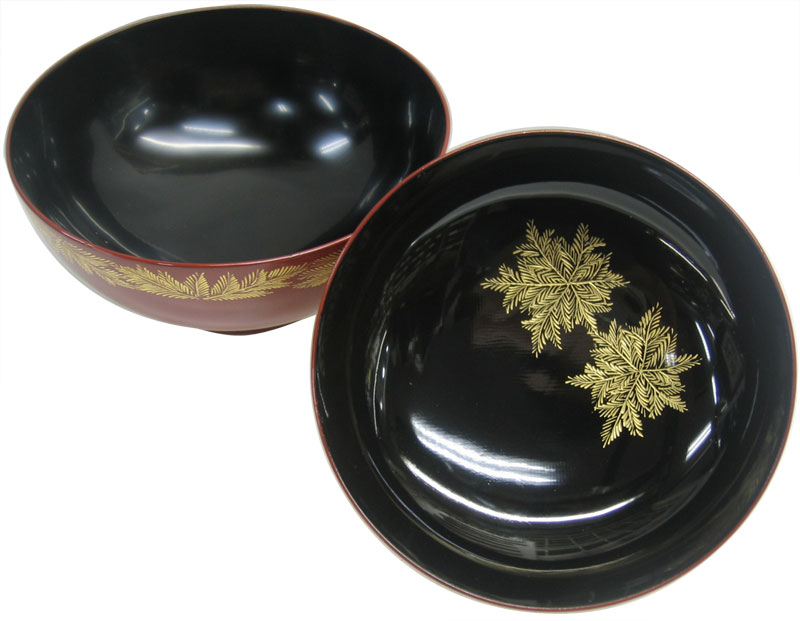 木製四五朱しのぶ沈金椀 漆塗 一客売