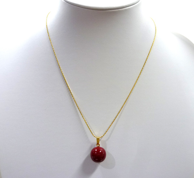 うるしの塗色は深みがあり、重々しい感じがいたしますが、木に塗を施しているので、身に着けているのを忘れるほどの軽い装着感のものとなっております。15mmφの大きさ、金メッキチェーン付。