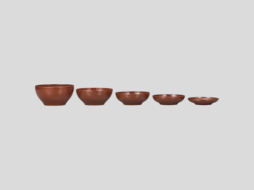 本来禅宗の修業僧が使用する応量器の寸法を小さめにし、朱漆塗にて仕上げました。料理の量に応じてご使用いただけ、収納は入子で使いやすく古の知恵を感じます。素地、塗共国内で製造されたものです。