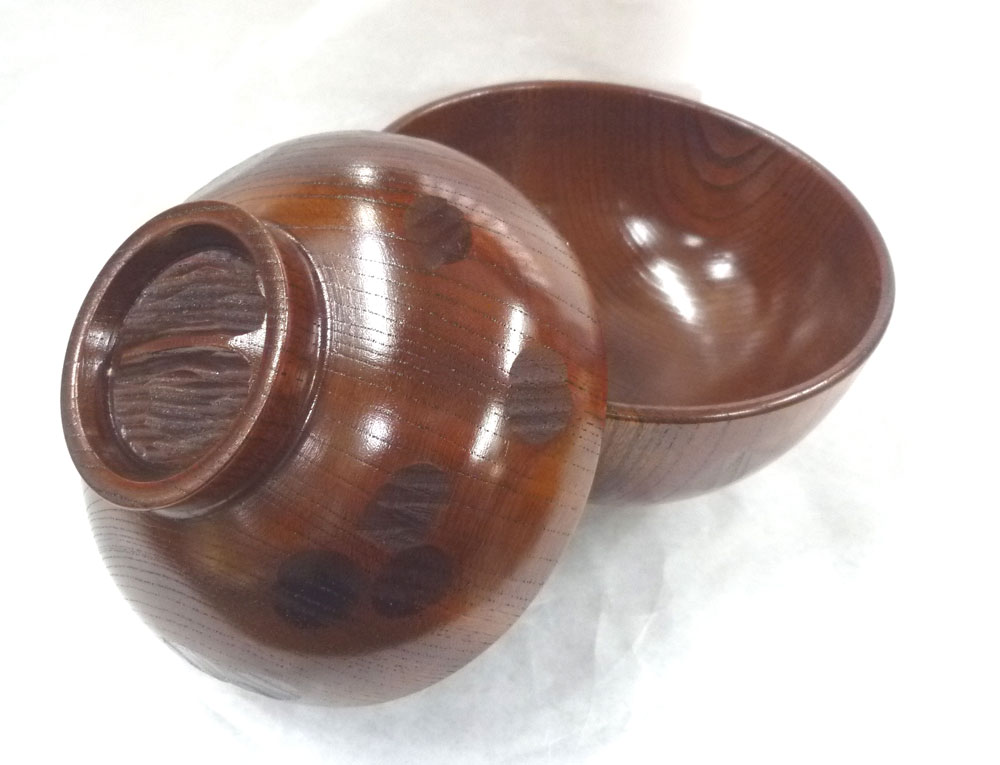 木製欅くりぬきの素朴な入れ子椀(オヤにフタがすっぽりはまる入子椀→収納便利 実用タイプ、飯椀・汁椀として二客としてお使いになれます 煮物椀・雑煮椀としても大きめで使いやすい