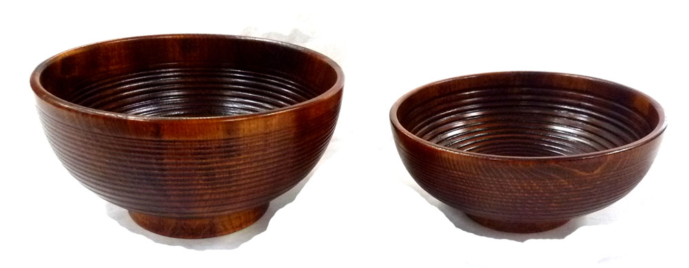 木製栃くりぬきの素朴な入れ子椀(オヤにフタがすっぽりはまる収納便利実用タイプ)、煮物椀・雑煮椀に大きめで使いやすい 蓋は汁椀または小鉢として使え、#4733の(小)も一緒にお使いいただくと、八十椀さながらの飯椀、汁椀、小鉢、小皿の食卓揃いとなります