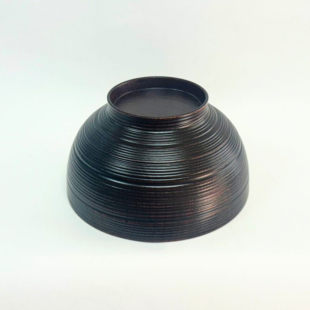 半透明の木地呂漆を何度も塗り重ね、丁寧に磨き上げることで、艶やかな漆の中に欅特有の豊かな木目がほのかに透けて見える、上質な風合いに仕上がっています。