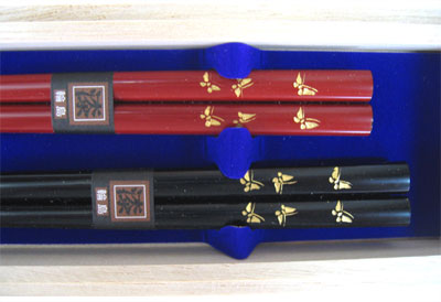 きらりと光る沈金の奥ゆかしさ(純国産 伝統工芸輪島塗) 「輪島ならではの伝統的沈金技法」を施した夫婦箸がお手頃な価格。大切な方への贈り物などに是非。 箸の長さは、225mmと210mmです