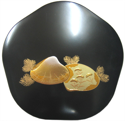 滑らかな形状、慶事のシンプルな貝合せデザイン 雅な貝合わせの柄を施した、梅型の可愛い2段重です。慶事のお菓子を入れてみてはいかがでしょうか