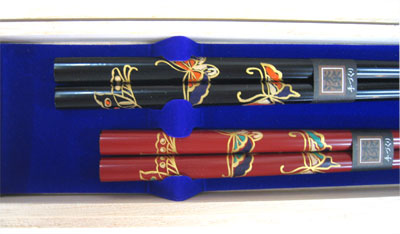 素敵な蒔絵のわかるあなたに(純国産 伝統工芸輪島塗) 「輪島ならではの伝統的蒔絵技法」を施した夫婦箸がお手頃な価格。大切な方への贈り物などに是非。 箸の長さは、225mmと210mmです