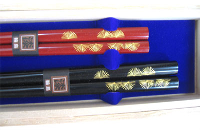 きらりと光る沈金の奥ゆかしさ(純国産 伝統工芸輪島塗) 「輪島ならではの伝統的沈金技法」を施した夫婦箸がお手頃な価格。大切な方への贈り物などに是非。 箸の長さは、225mmと210mmです