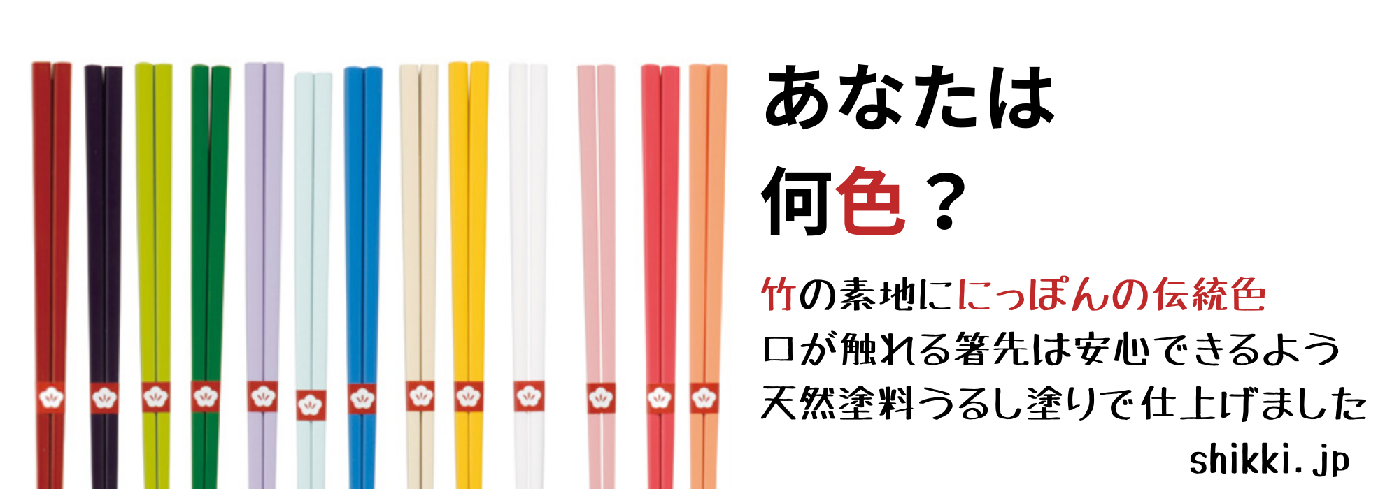 にっぽん伝統色箸 #竹素地に日本伝統色(箸先安心 天然うるし塗)
